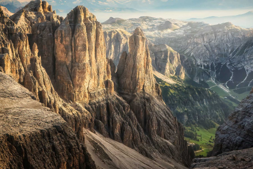 Reggeli után nekivágunk az utolsó túranapunknak. Autóval megyünk a Pordoi-hágóhoz, majd innen felvonóval emelkedünk fel közel 2900 méteres magasságba, a Sella-hegycsoport jellegzetes mészkőfennsíkjára. Itt már eltűnnek a zöld rétek: egy 230 millió éves, egykori korallzátony tetején állunk, közel háromezres magasságban. A Forcella-hágó irányából kapaszkodunk fel a Piz Boè (3152 m) csúcsára – a hét legmagasabb pontjára. Fent teljes körpanoráma fogad bennünket: a Marmolada, a Sassolungo, a Rosengarten és a Dolomitok számtalan ikonikus csúcsa rajzolódik ki előttünk.