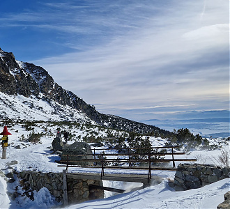 Bőséges reggelink elfogyasztása után, autóval kb. 20 perc alatt érünk az indulási helyszínre, ahol ma is belépünk a téli álomtáj birodalmában. A magával ragadó Csorba-tótól indulunk útnak, ami már önmagában impozáns látványt nyújt. Vastag hó- és jégtakaró, fehérlő fenyvesek, és friss hegyi levegő fogad minket. Innen kényelmes tempóban gyalogolunk a Poprádi-tó felé, amelyet joggal nevezhetünk a Tátra másik gyöngyszemének. A fenyvesekkel körülvett, 17 méter mély tó nyáron smaragdzöld színével csempész mediterrán hangulatot a magashegyi tájba, télen azonban egészen más arcát mutatja: álomszerű, hóval és jéggel borított köntösbe öltözik. Itt lesz lehetőségünk megpihenni, inni, és harapni valamit a menedékházban.