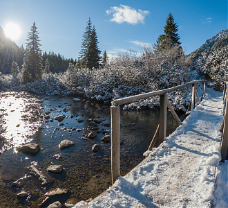 Ótátrafüreden találkozunk egy hangulatos helyi kávézóban, ahol egy-egy meleg itallal, süteménnyel hangolódunk a téli varázsbirodalomra. Felvonóval megyünk fel a mesebeli Tarajkára - itt akinek van kedve, megtekintheti a híres jégpalotát, melynek építéséhez minden alkalommal világhírű épületek adnak ihletet. Nemsokára neki is vágunk utunknak a Zamkovszky-menedékház felé. Festői ösvényen haladunk, hófedte fenyvesekkel, feleljthetetlen panorámával körülölelve. Megérkezünk a híres Óriás-vízeséshez. Melegebb időben Kis-Tar-patak fehérlő vize sziklák között zúdul le a 20 m mélységű völgybe, télen viszont a vízesés általában óriás jégoszloppá változik, és így egy lenyűgöző, "jégbe zárt" látvány tárul a szemünk elé. Néhány fotó, és folytatjuk túránkat a menedékház felé. Vadregényesen kanyargó ösvényen emelkedünk, lábizmainkat jól átmozgatva. A tér egyre kitágul körülöttünk: rálátunk a hótakaróba burkolózott, csipkézett csúcsokra. Hamarosan megérkezünk a téli erdőben megbúvó, hagyományőrző Zamkovszky-menedékházba. Itt lehetőségünk lesz megkóstólni a helyi finomságokat is, legyen szó akár egy tartalmas gőzgombócról vagy juhtúrós sztrapacskáról.