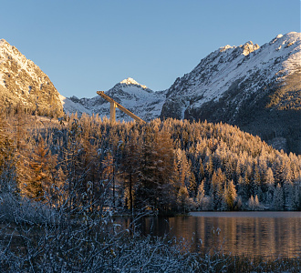 A rövid pihenés után ismét a havas fenyvesek és hóborította fák között folytatjuk túránkat, miközben lélegzetelállító panoráma nyílik a Magas-Tátra jellegzetes, csipkézett bérckoronájú vonulataira, köztük a felénk magasló Oszterva-csúcsra is. A téli mesebirodalomban tett túra után visszaérkezünk a Csorba-tóhoz és az autókhoz, feltöltődve a hegyek csendjével és a téli táj varázsával.